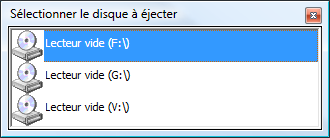 Enfin, si vous possédez plusieurs lecteurs optiques, les drivers affichent un petit popup permettant de choisir lequel doit être éjecté à chaque fois que vous pressez la touche d'éjection :